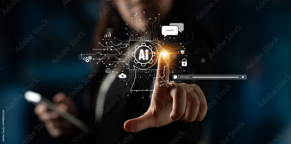 Fototapeta na wymiar - AI chatbot using prompt engineering and LLM deep learning delivers explainable generative AI for smarter, more efficient business support. Latch.