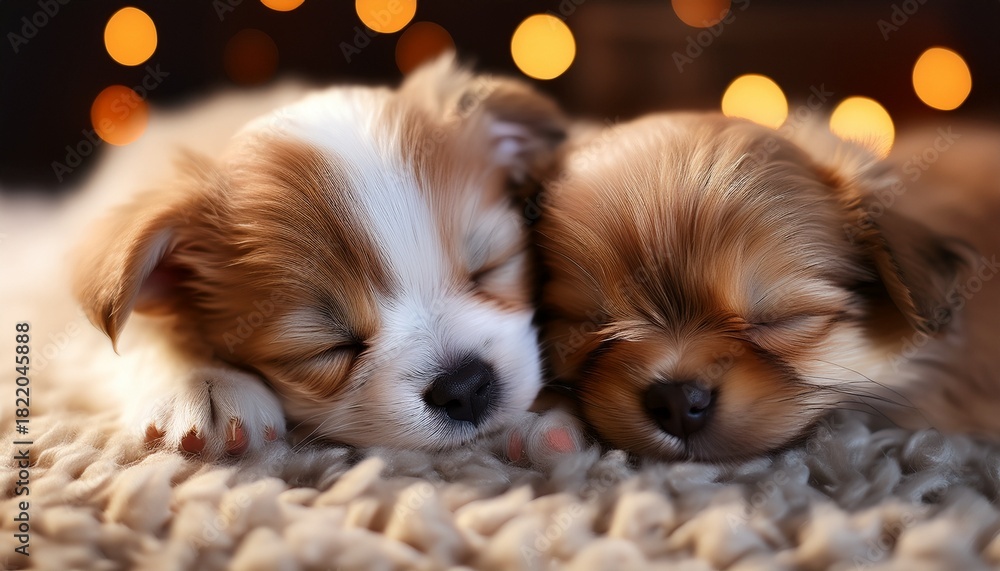 Fototapeta na wymiar - two small pets sleeping on a carpet.