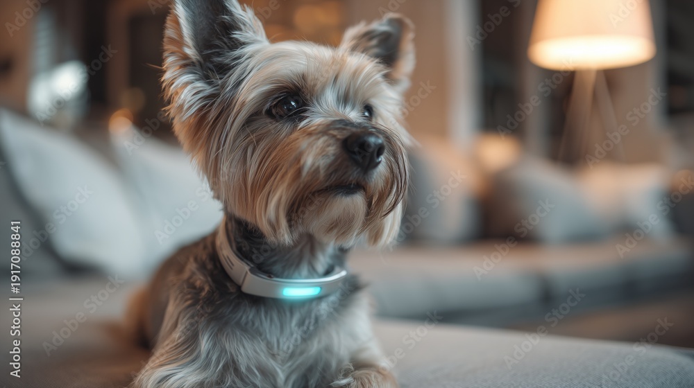 Fototapeta na wymiar - modern living room pet with health tracker collar.