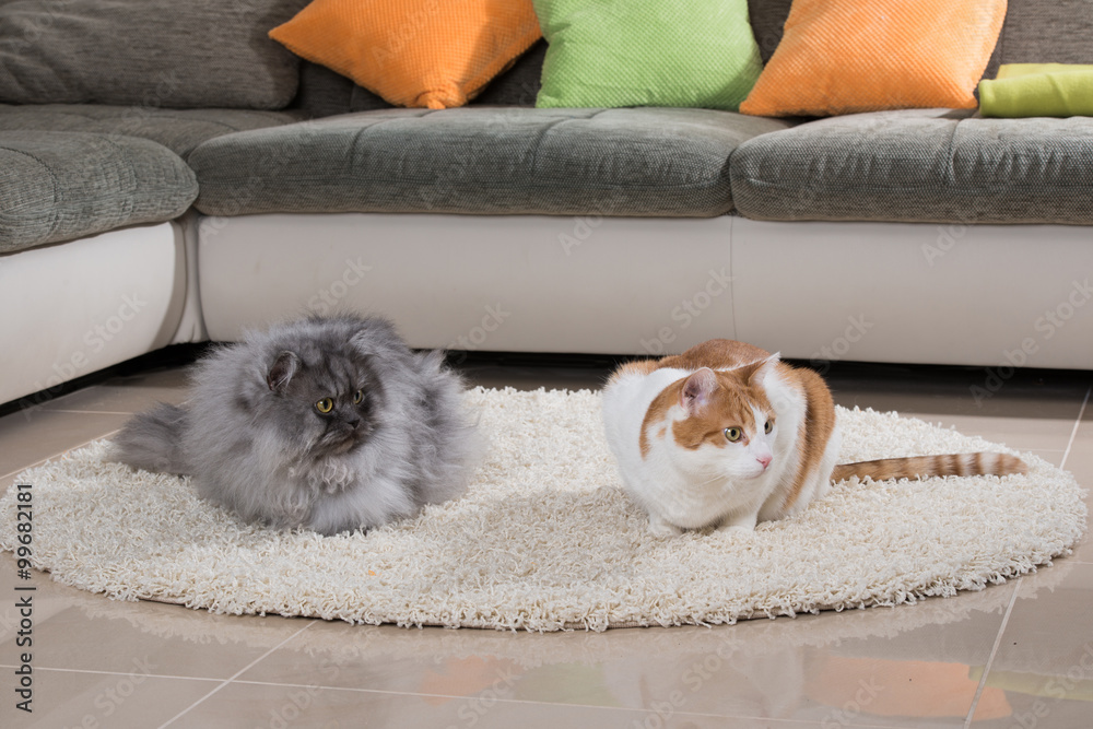 Fototapeta na wymiar - Zwei Katzen im Wohnzimmer.