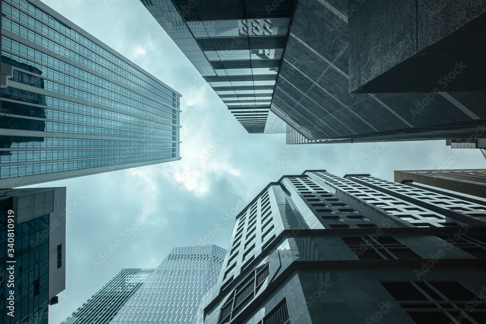 Fototapeta na wymiar - View of modern business skyscrapers glass and sky view landscape of commercial building in central city.