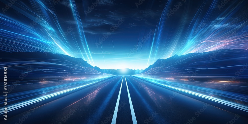 Fototapeta na wymiar - Abstract road with blue light trails , data transfer speed and digitization concept.