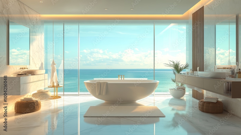 Fototapeta na wymiar - Luxury Bathroom with Ocean View..