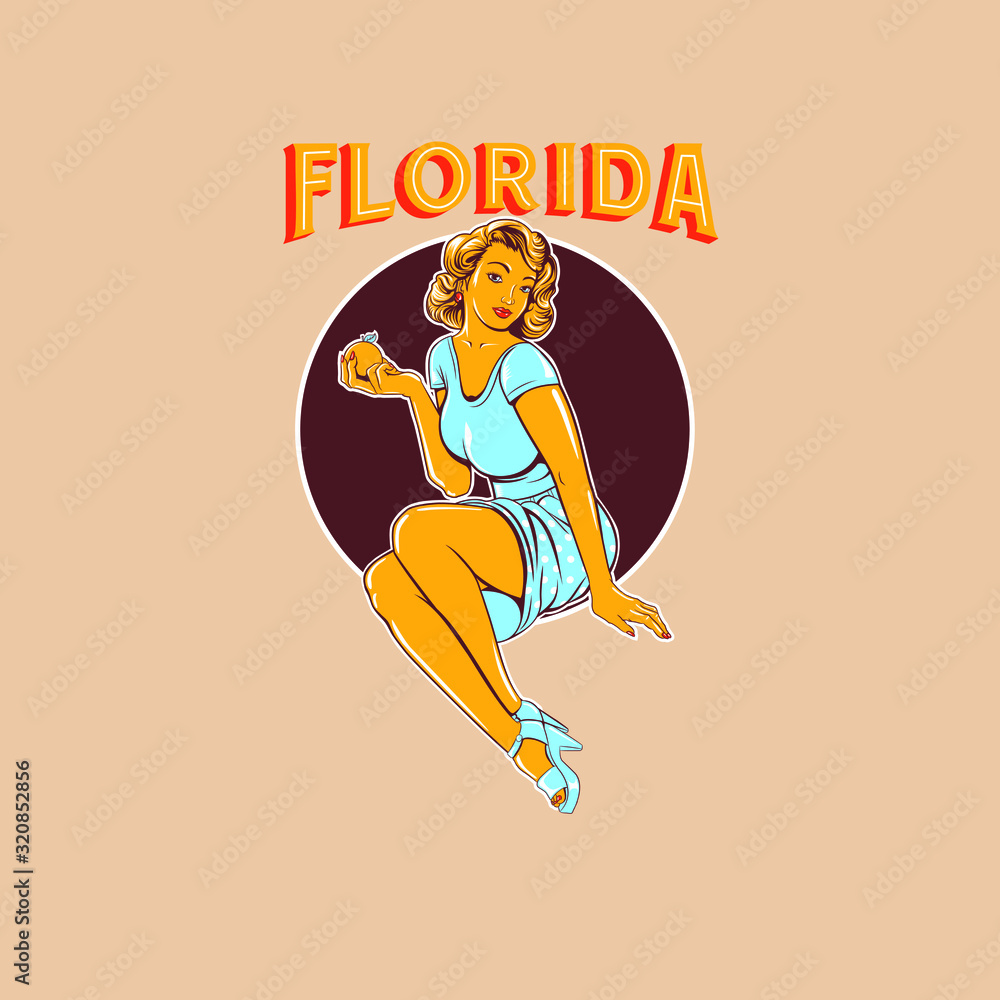Fototapeta na wymiar - florida orange pin up girls illustration.