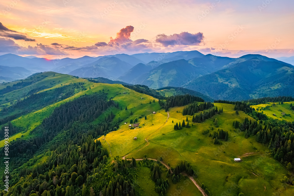 Fototapeta na wymiar - Photo taken with a drone at a cross on a mountain ridge.
