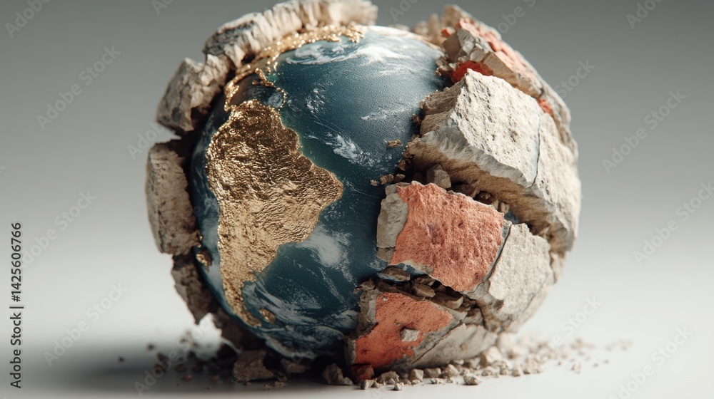 Fototapeta na wymiar - Cracked and broken earth symbolizing the impact of natural disasters and climate risk in an ecological context.