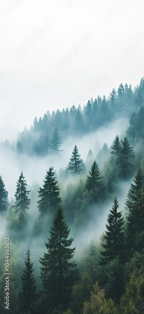 Fototapeta na wymiar - Zamglone drzewa na zboczu góry - 003.