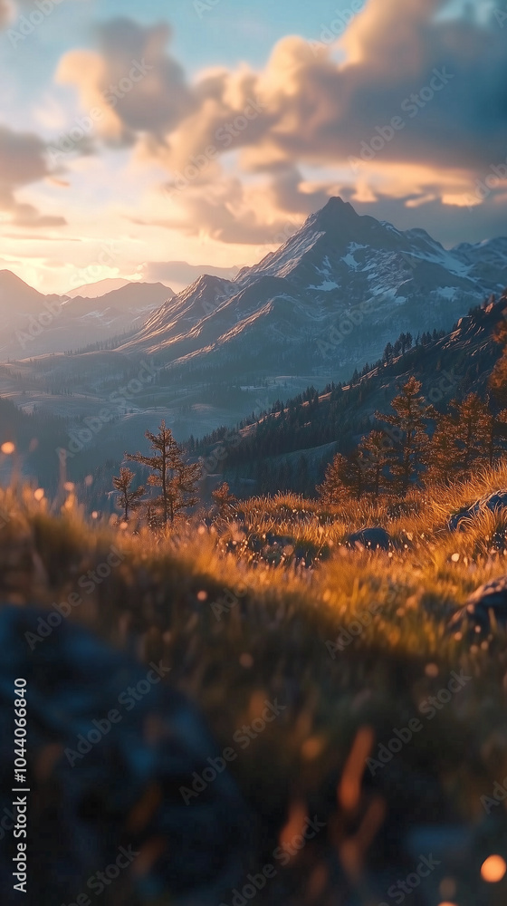 Fototapeta na wymiar - Górski widok z trawami na pierwszym planie - 033.
