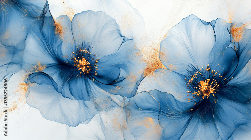 Fototapeta na wymiar - Tło kwiatowe, niebieskie abstrakcyjne kwiaty tło dla projektu, generative ai .