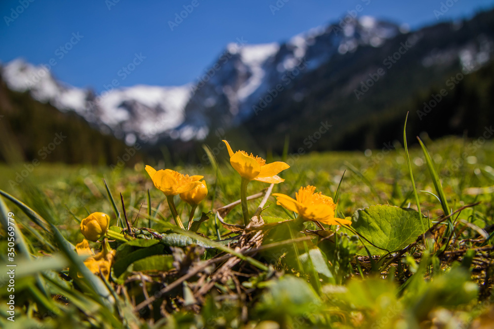 Fototapeta na wymiar - Wiosenne kwiaty Na Wielkiej Polanie Małołąckiej w Tatrach Zachodnich.