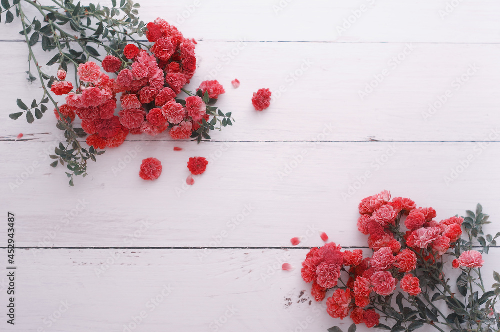 Fototapeta na wymiar - Kwiaty Róże leżące na deskach. .