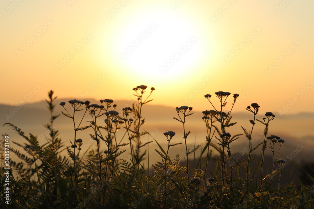 Fototapeta na wymiar - rośliny i wschód słońca.