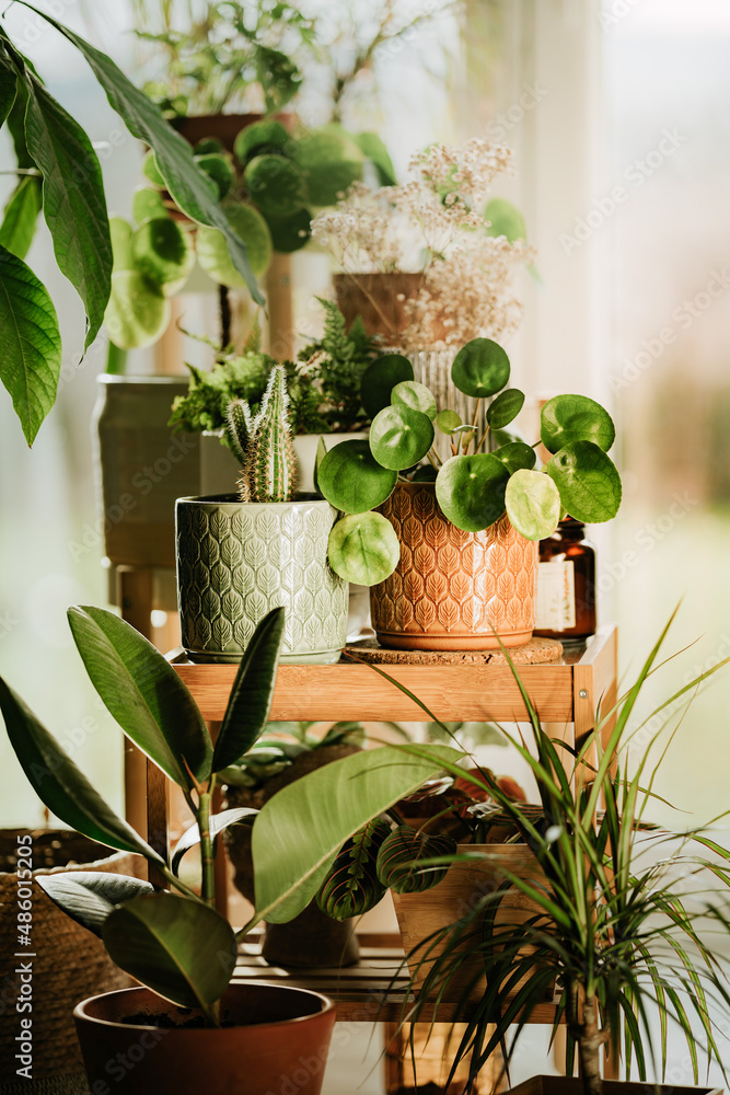 Fototapeta na wymiar - Rośliny doniczkowe ustawione w oknie.