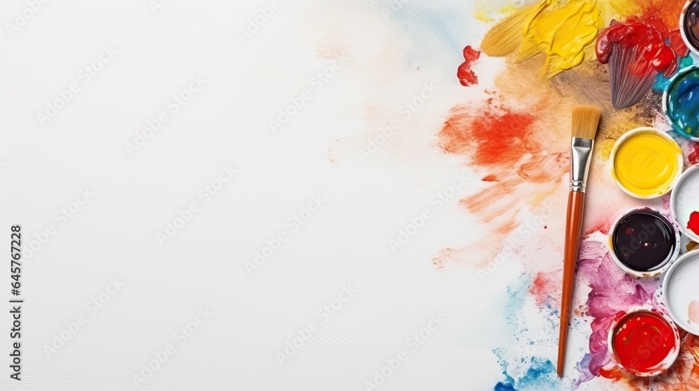 Fototapeta na wymiar - Art supply on table, canvas with copy space.