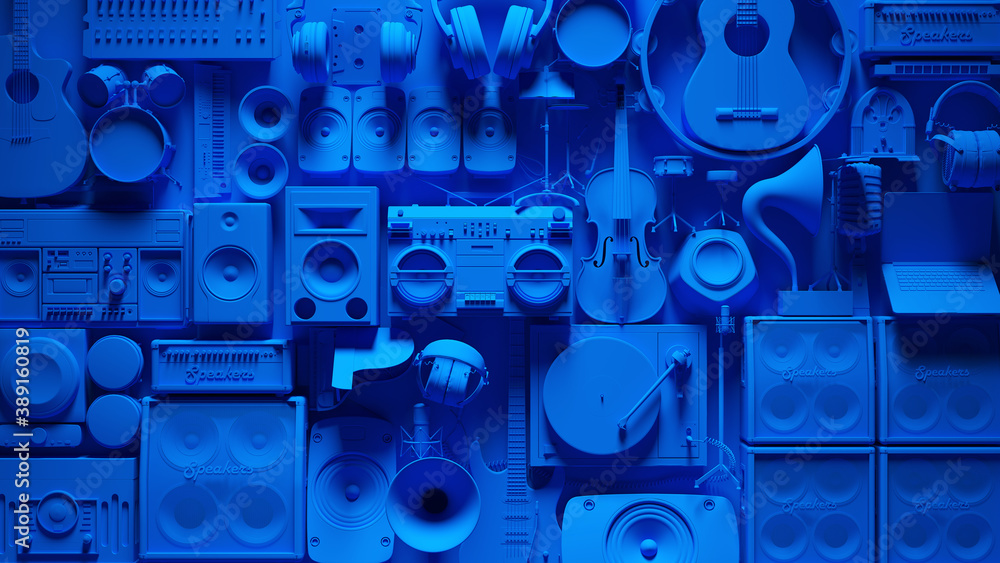 Fototapeta na wymiar - Blue Musical Instrument Wall 3d illustration .