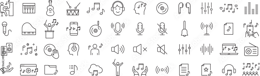 Fototapeta na wymiar - 音楽に関係する線画アイコンセット.