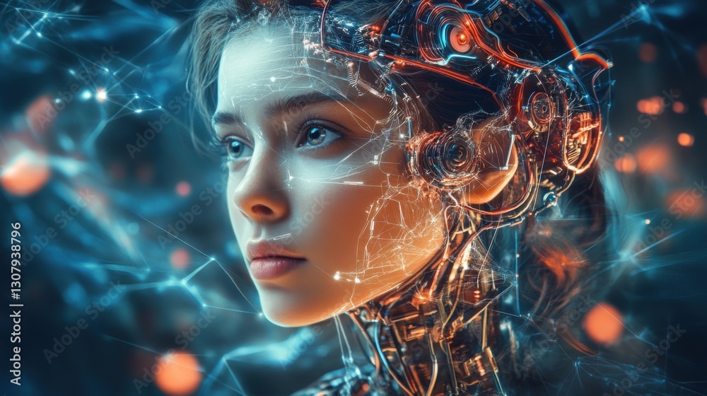 Fototapeta na wymiar - Futurystyczny portret kobiety robota.