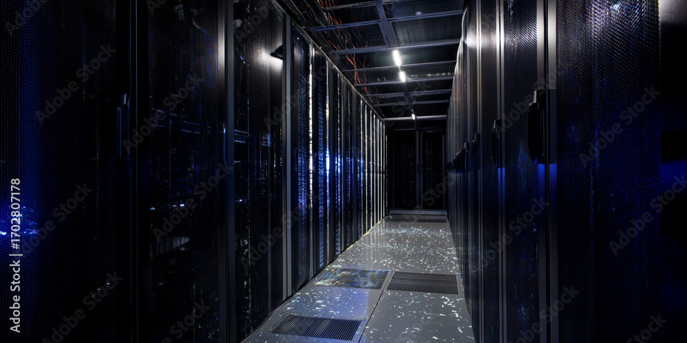 Fototapeta na wymiar - Sala wypełniona serwerami. Duża serwerownia. .