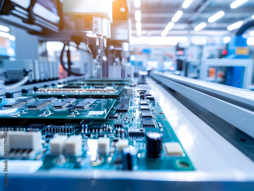 >Fototapety na wymiar>Modern electronics manufacturing facility showcasing advanced machinery and circuit boards. image captures intricate details of production process, highlighting technology and precision
