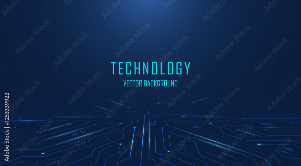 Fototapeta na wymiar - Abstract AI circuit board in dark blue background. High-tech electronics board digital technology. Isometric electronic motherboard background. Vector illustration..