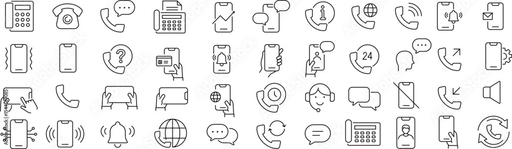 Fototapeta na wymiar - ベクターでモノクロの電話に関する線画アイコンセット .