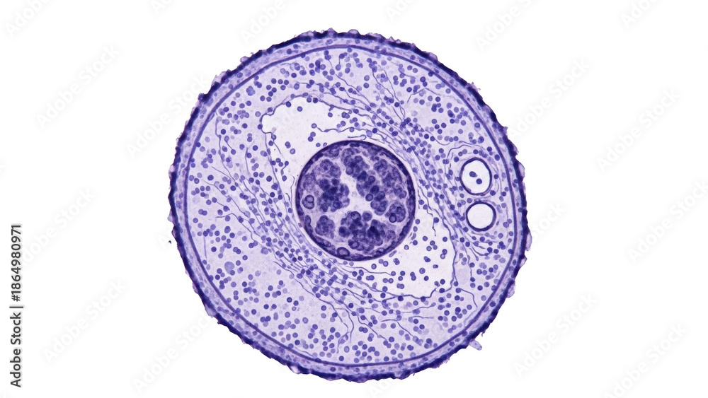 Fototapeta na wymiar - Microscopic view of a mammalian oocyte with surrounding cells and structures png isolated transparent background.
