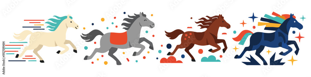 Fototapeta na wymiar - Running Horse Chines New Year Flat Vector Illustration on Transparent Background.