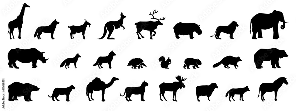 Fototapeta na wymiar - Black mammal animal silhouette collection. Set of black animals icon.