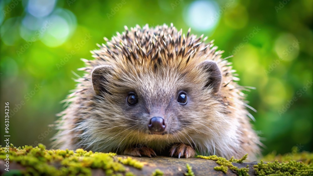 Fototapeta na wymiar - Close up of a hedgehog showing its spines and cute face, hedgehog, cute, animal, prickly, spines, wildlife, close up, mammal.