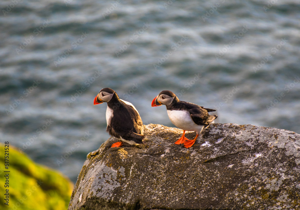 Fototapeta na wymiar - Maskonury na Wyspie Runde w Północjej Norwegii.