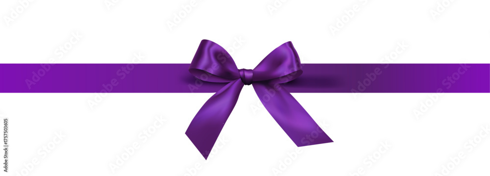 Fototapeta na wymiar - Vector decorative shiny gift purple ribbon with tied bow design element isolated on white background .