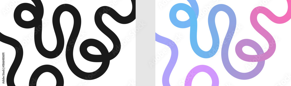 Fototapeta na wymiar - Abstract squiggly lines, Vibrant abstract gradient line with flowing pink to blue hues forming dynamic wavy curves. Modern minimalist background element perfect for posters, tech art, and digital desi.