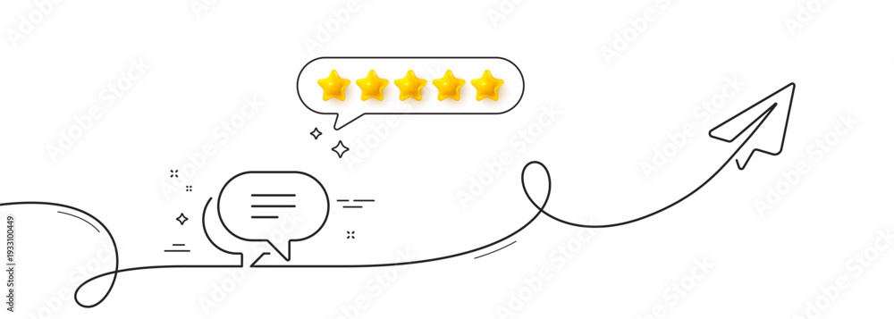 Fototapeta na wymiar - Text message line icon. Continuous line with share plane. Chat comment sign. Speech bubble symbol. Five star rate review in speech bubble. Text message single line ribbon. Loop curve pattern. Vector.