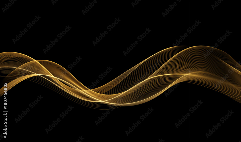 Fototapeta na wymiar - Vector Abstract Shiny Glowing Gold Color Wave. Transparent Golden Wavy Lines. Elegant Luxury background. Black BG.