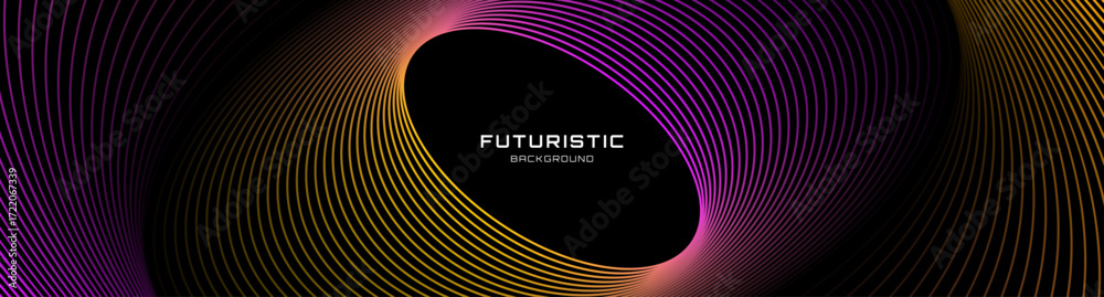 Fototapeta na wymiar - Yellow purple lines techno abstract background overlap layer on dark space with ellipse effect decoration. Modern graphic design element stripes style concept for web, flyer, card, or brochure cover.