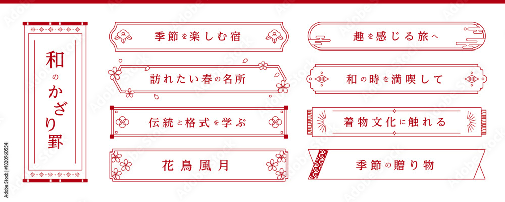 Fototapeta na wymiar - 横書きの和風フレーム 素材セット 〜シンプル・ミニマルデザイン〜.