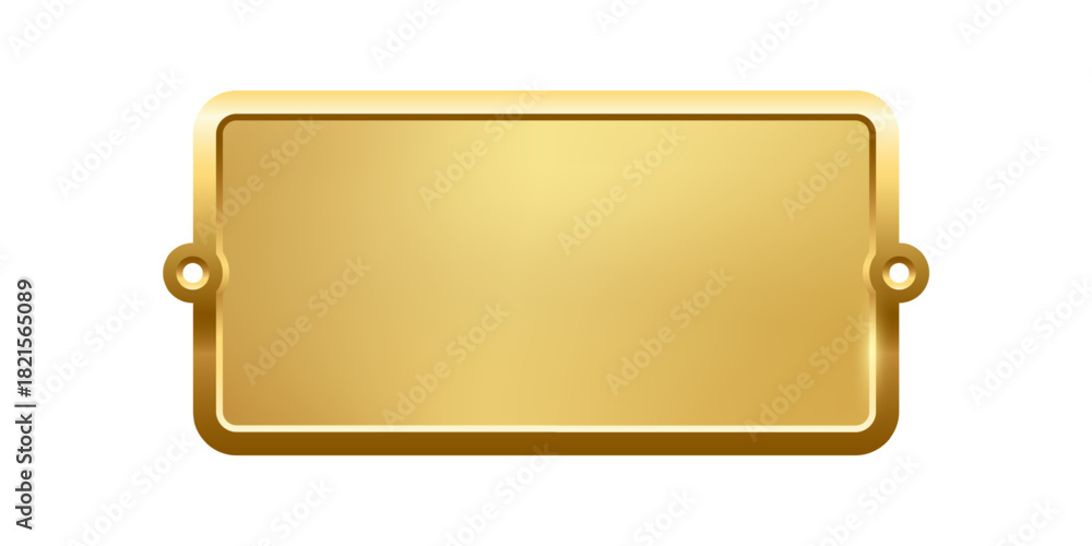 Fototapeta na wymiar - Blank golden nameplate plaque with screw holes. Metallic rectangular label for engraving, signage, awards, door signs. Realistic vector illustration.