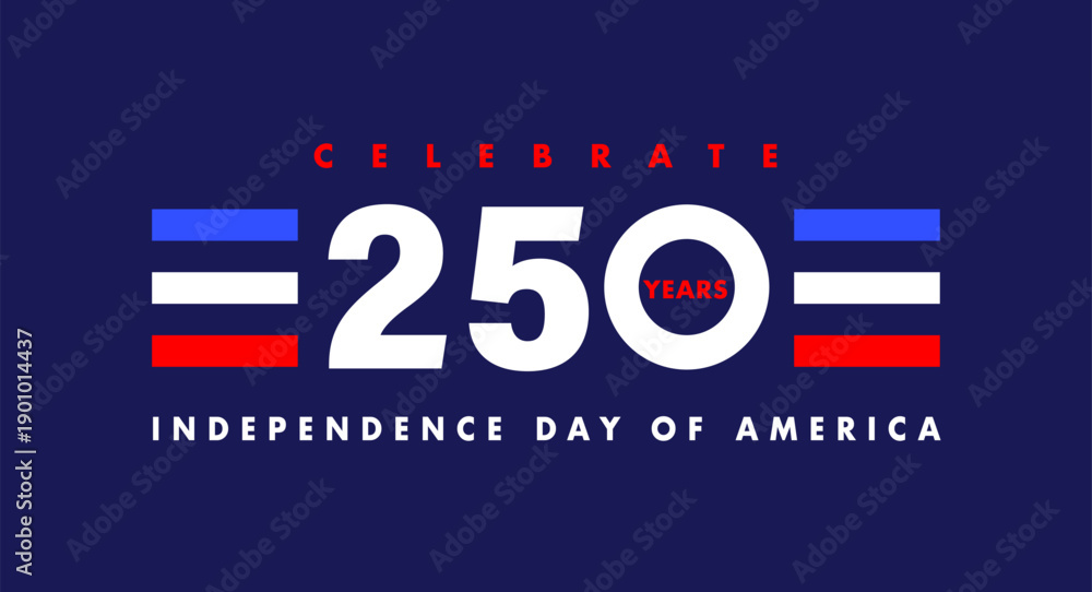 Fototapeta na wymiar - Celebrate 250 years Independence Day of America, creative banner concept. 250th anniversary of USA logo for holiday posters design. Vector illustration.