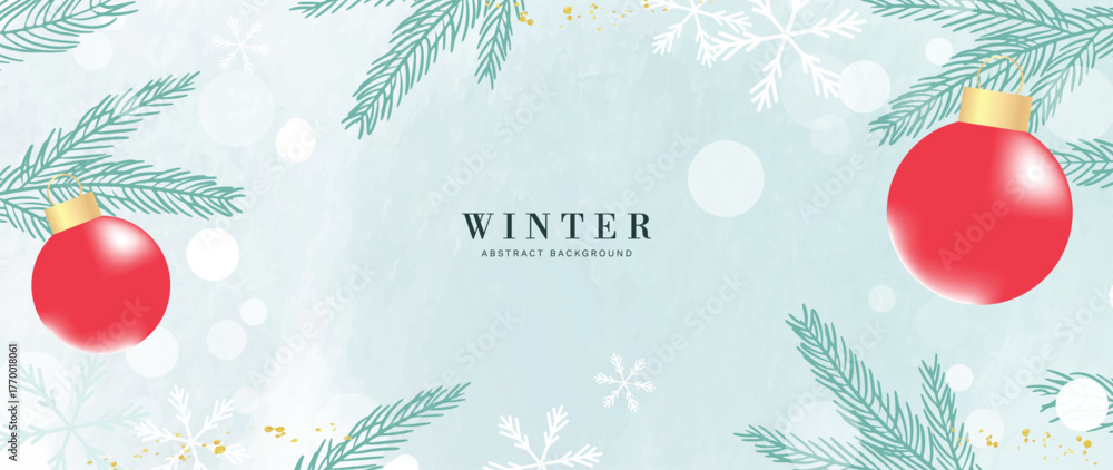 Fototapeta na wymiar - Winter vector background with red berries on frosty branches and snowy hills, elegant holiday scene for invitations, posters and cards.