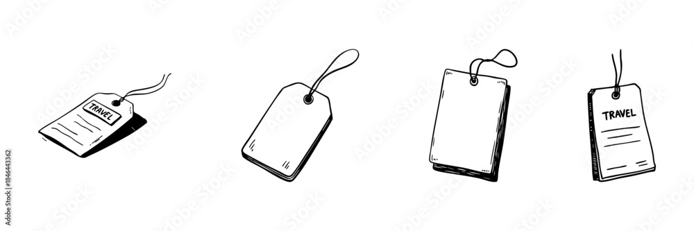 >Fototapety na wymiar>Wybrane motywy - zobacz więcej !>Drzewa>Travel Luggage Tags Doodle Sketch Set. Journey Identification And Baggage Labeling In Hand Drawn Style Collection. Travel Organization And Suitcase Accessories. Isolated Vector Illustration