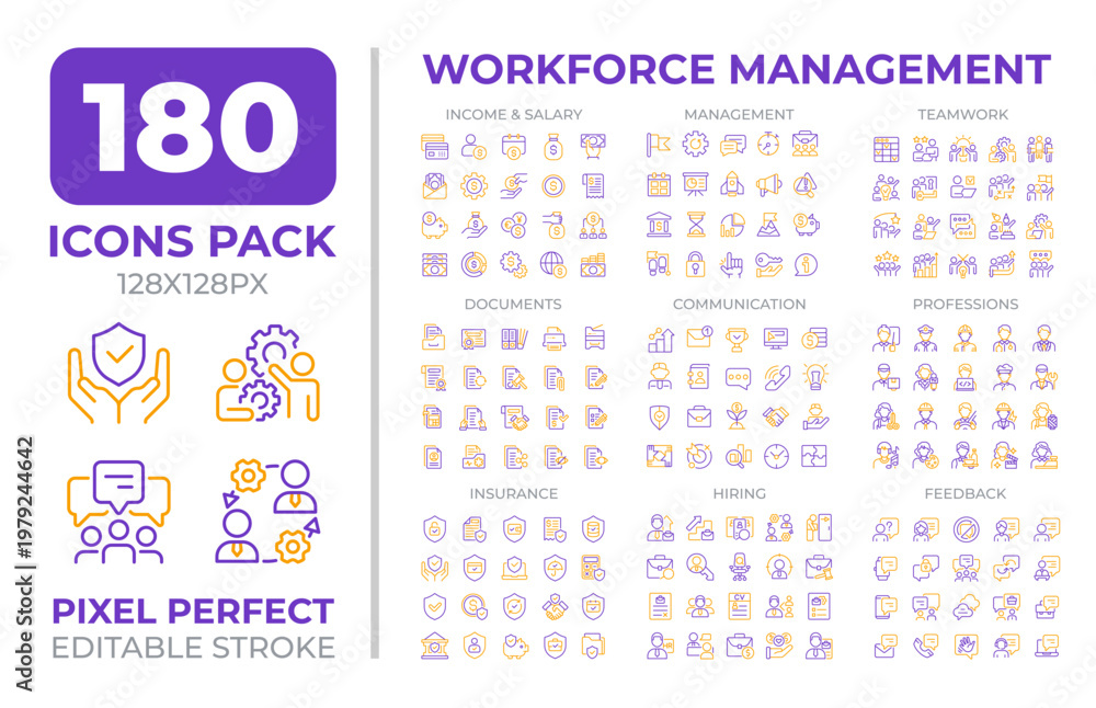 >Fototapety na wymiar>Wybrane motywy - zobacz więcej !>Drzewa>Workforce management two color line icons set collection. Talents hiring strategy. Salary and employee payrolls bicolor outline mega pack isolated, pixel perfect. Duotone thin lineart. Editable stroke
