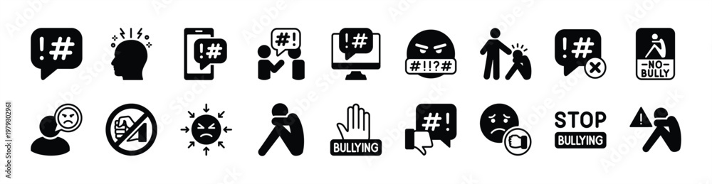 Fototapeta na wymiar - Global problem issue icon vector set. Contains cyber bullying, social issues, crime, depression, racism, abuse, victim, stop, brainstorm, violence, conflict, anger, anxiety, discrimination.