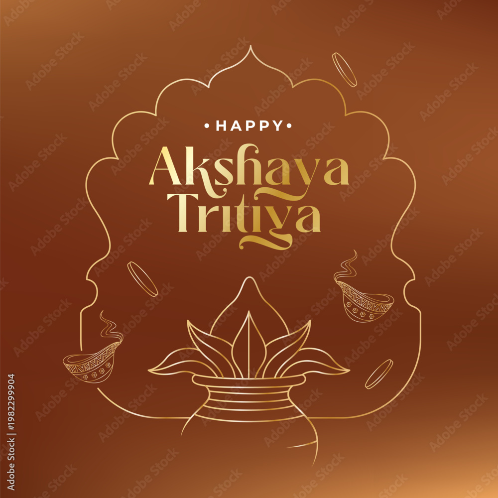 Fototapeta na wymiar - Happy Akshaya Tritiya Festival Vector Banner Design Template with Jewellery Illustration.