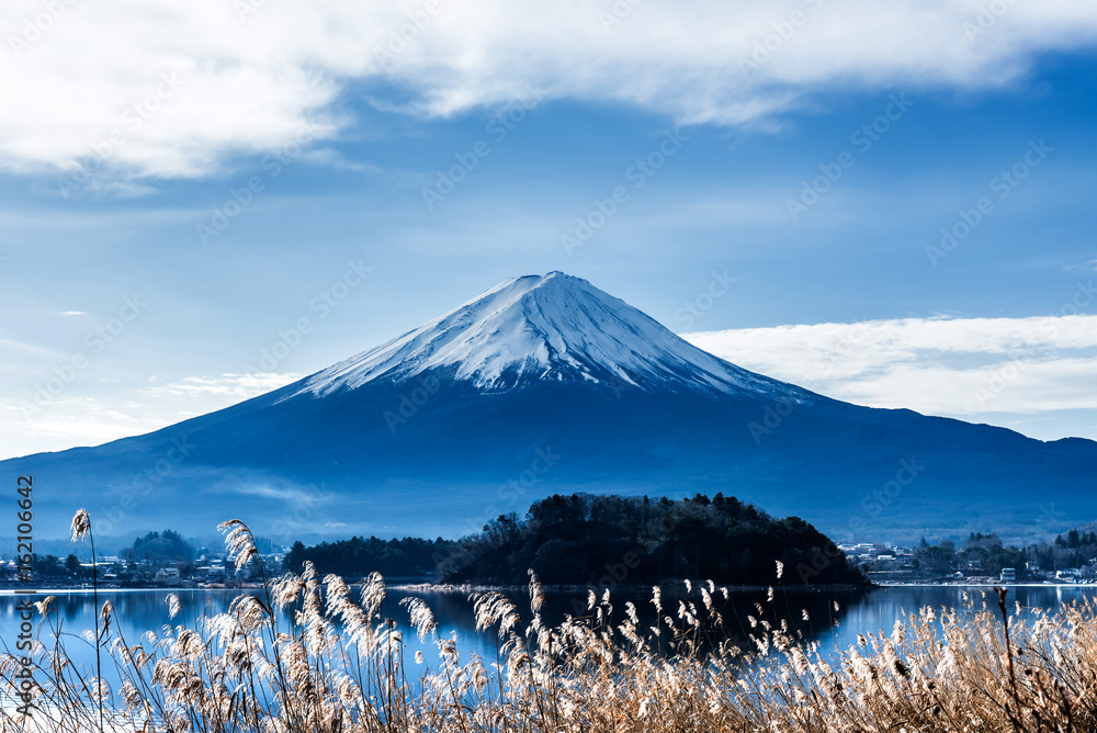 Fototapeta na wymiar - Fuji mountain with blue sky, landscape in Japan.