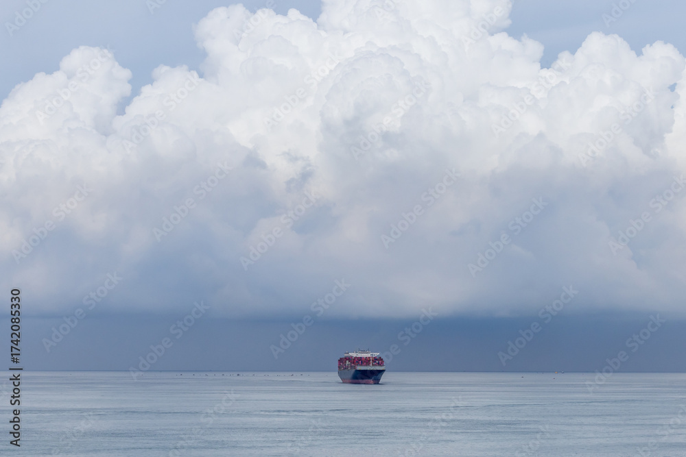 Fototapeta na wymiar - Container ship cargo shipping business logistic import and export freight transportation by container ship in open sea, Container loading cargo freight ship boat..