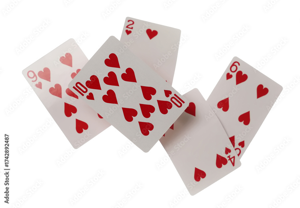 Fototapeta na wymiar - Playing cards for poker and gambling, series of hearts isolated on white background with clipping path .