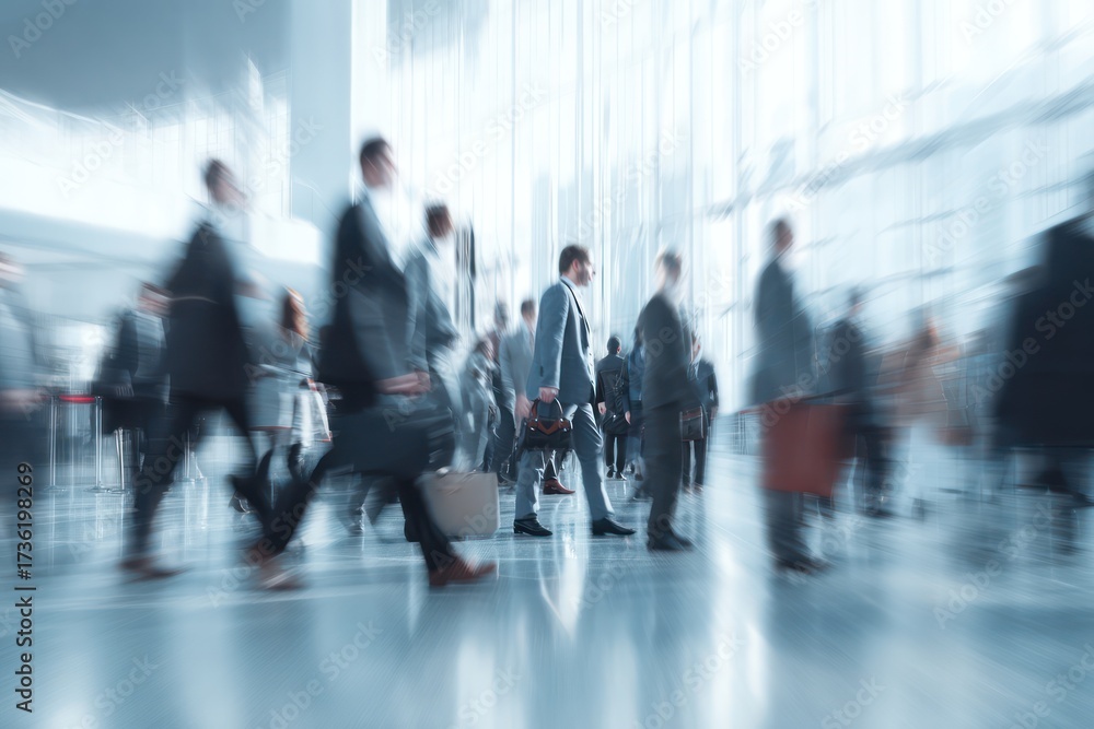 Fototapeta na wymiar - Blurred motion crowd of business people in office lobby.