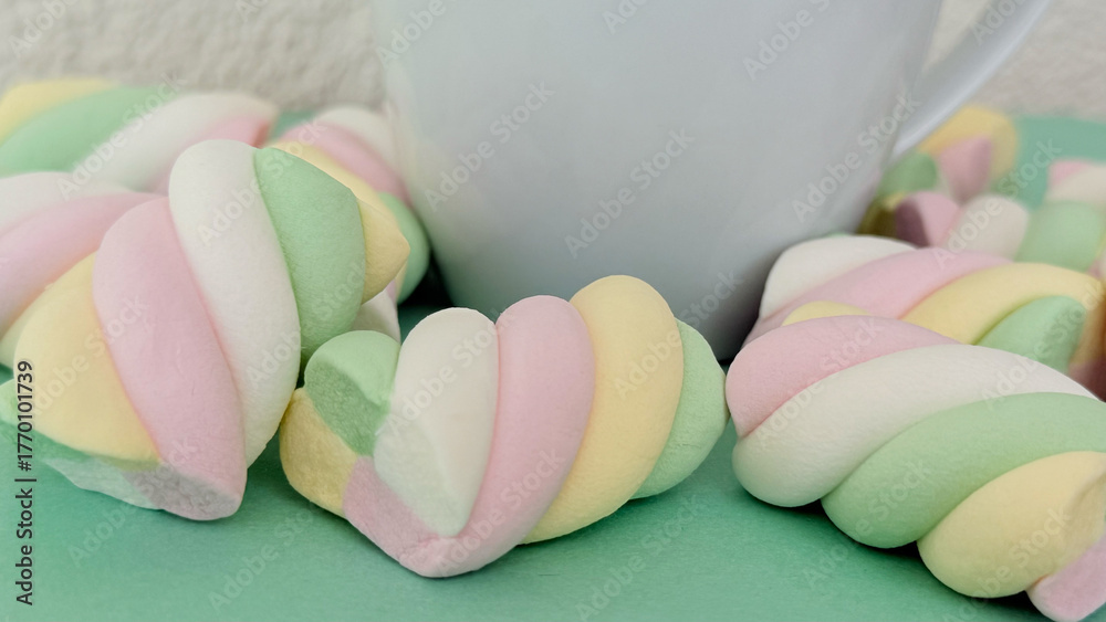 Fototapeta na wymiar - Close up marshmallows with cup.