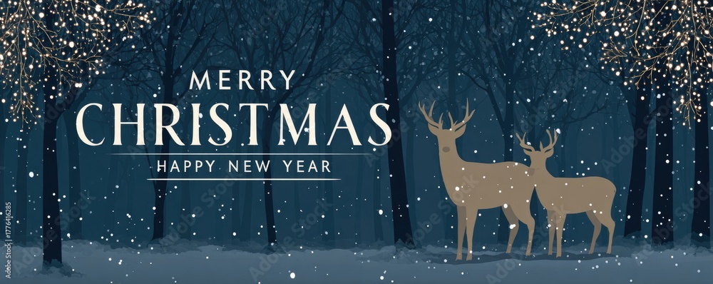 Fototapeta na wymiar - christmas greeting card with deer in forest illustration.