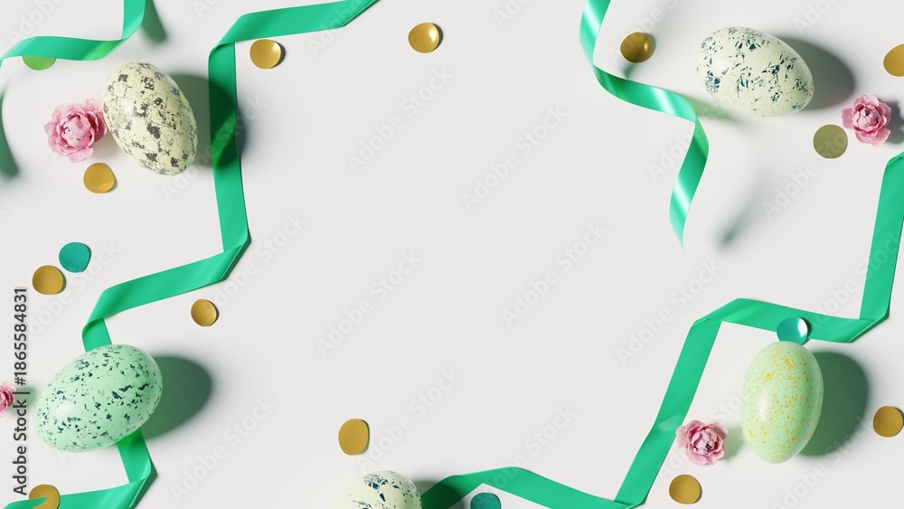 Fototapeta na wymiar - 3D Illustration. Flat lay Colorful Easter Eggs on white background. 3D Rendering.